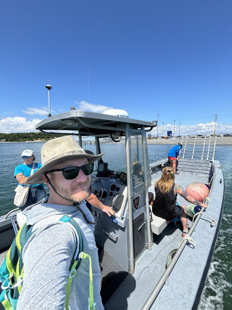 For my part in the operation, this project consisted of months of group calls, discussions of tides, questions of implementation, vessel sourcing, vessel landing, talking with contractors, disposal logistics, volunteer wrangling, and mainly, how the heck are we actually going to pull this off during one single week in September? My personal knowledge of the outer islands was limited to say the least, mostly recognizing them from going by on a ferry or whale watch vessel. I’m familiar with the underwater topography in the area from a few dive trips to Graves Island or the infamous “trash barges”, but I had never seen any of these five islands up close until my first reconnoiter trips with DCR at the beginning of July. At this point we were not allowed to set foot on the islands because of nesting birds but we conducted a “flyby” of the islands to have a closer look at landing options and identify where gear could be staged and later picked up. DCR gave us a look at the yurts we would live in for the week on Peddocks Island and we made contact on this trip with Mike McDevitt of Acushnet Marine in Hull who would later become key to local knowledge and an integral part of this operation as a whole.