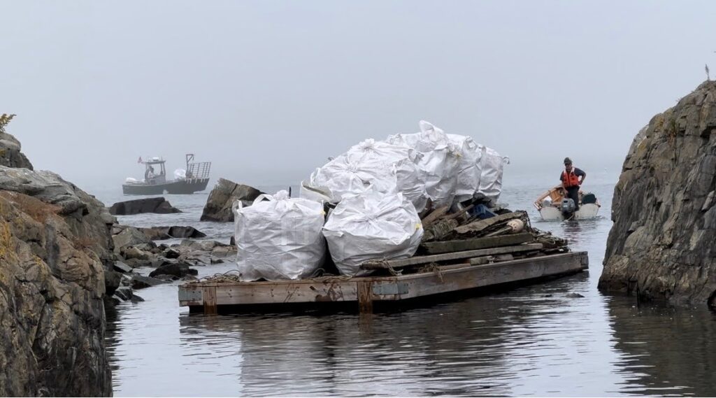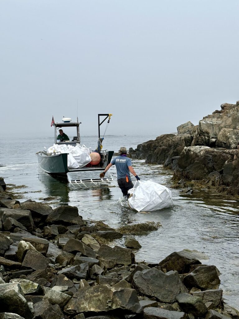 The remaining debris that had been staged on Calf, Great Brewster, Middle Brewster, and Lovell’s Islands was collected over the next two weeks. It was another three full days of work to load another float on Lovell’s, move around 150 lobster traps on Great Brewster, grab the encapsulated foam floats and supersacks off Calf, and finally drag the last six supersacks off of Middle Brewster using the DCR landing craft.