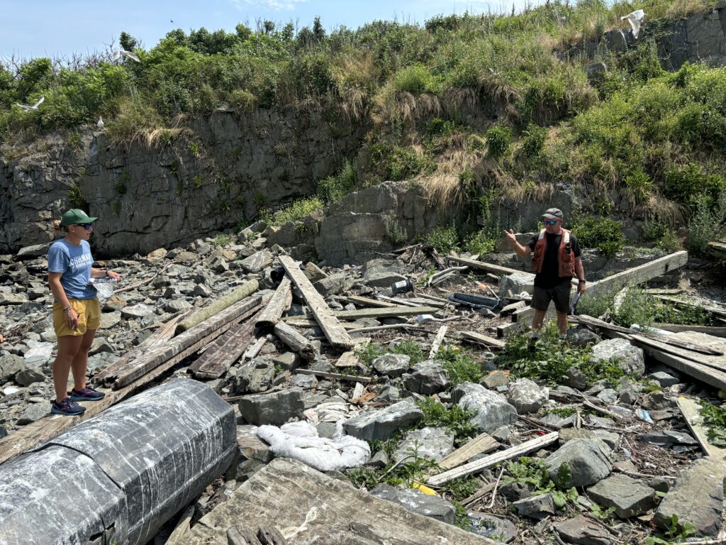 In mid July we had another chance to join DCR to put feet on Outer and Middle Brewster Islands, the two islands that would provide the greatest logistical challenges out of the five with rocky reefs, steep cliffs, and overall unforgiving shorelines. At this point we had decided Mike McDevitt should be on point for the heavy lifting so he was able to join me and Belle Procaccini of DCR on the scouting mission. This day gave us valuable information as to the scale of debris we would be removing from these hard to reach islands as well as how to begin formulating our plan of attack.