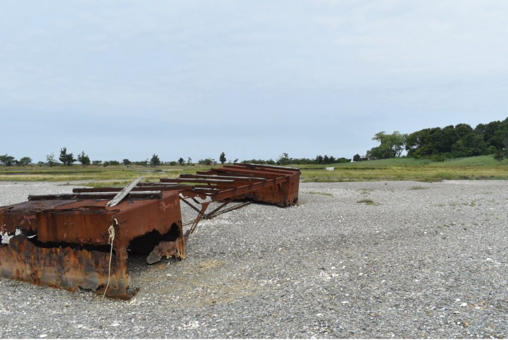 The four hundred yard long shorelines on both sides were marred by the long derelict remains of broken piers, floats, vessels and gangways, seemingly every fifty yards. Their metal and wood frames lay partially in buried in the sand and gravel.