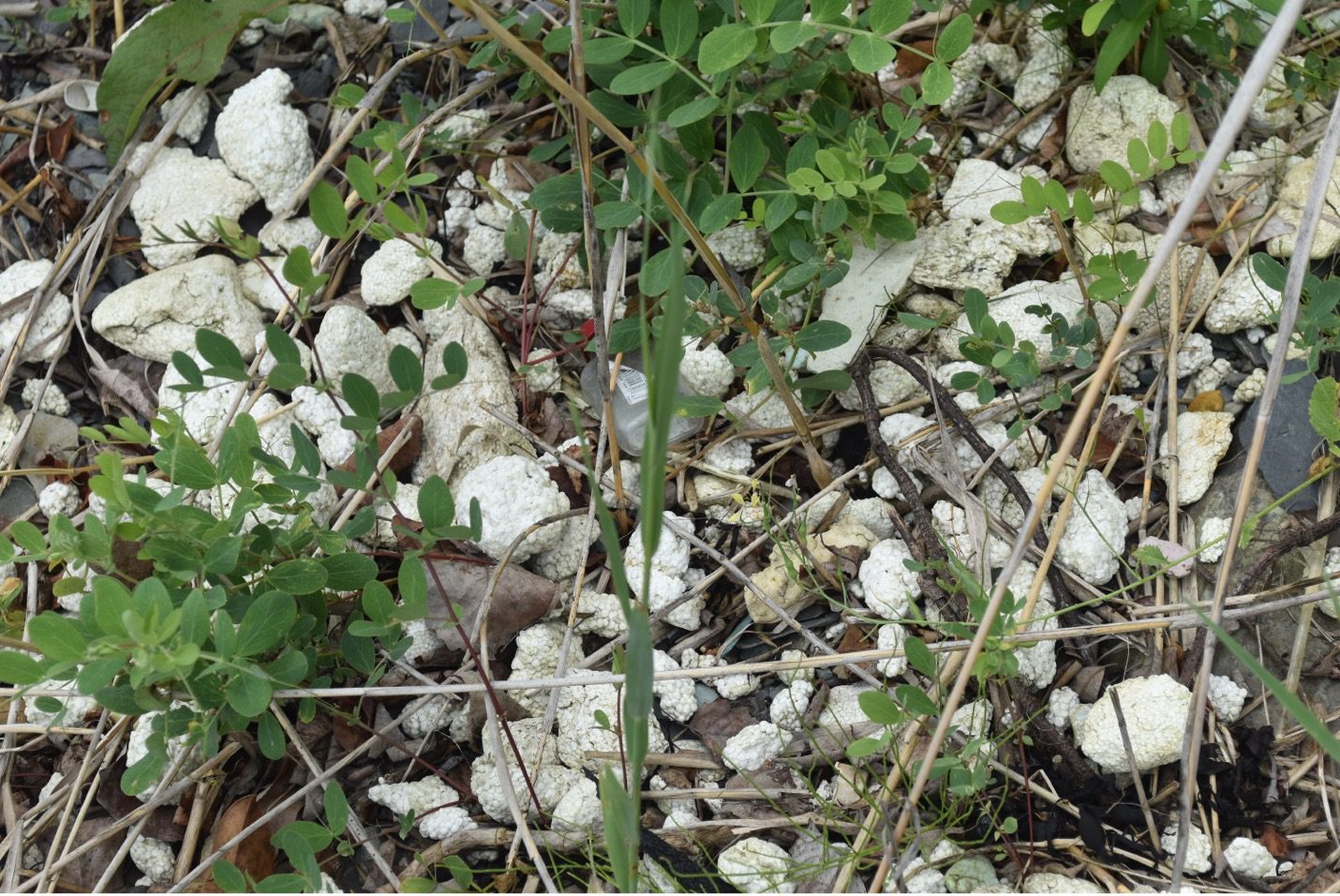 Their foam and plastic contents, once used for flotation, spewed out in various stages of decay with sizes ranging from that of kitchen tables to popped popcorn and eventually a carpet of dangerous plastic beads collected in the lowest lying spots.