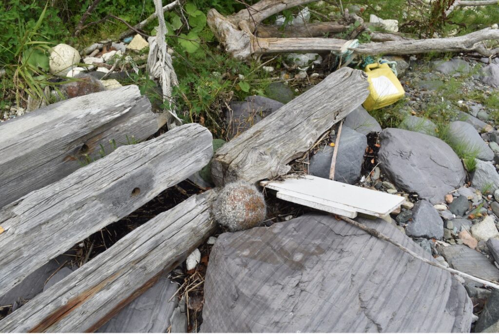 The detritus of the high tide lines had the usual array of human-made objects interspersed with the seaweed. Ubiquitous plastic food and drink containers, bits of plastic marine rope, small pieces of pressure-treated wood were among the more usual suspects.