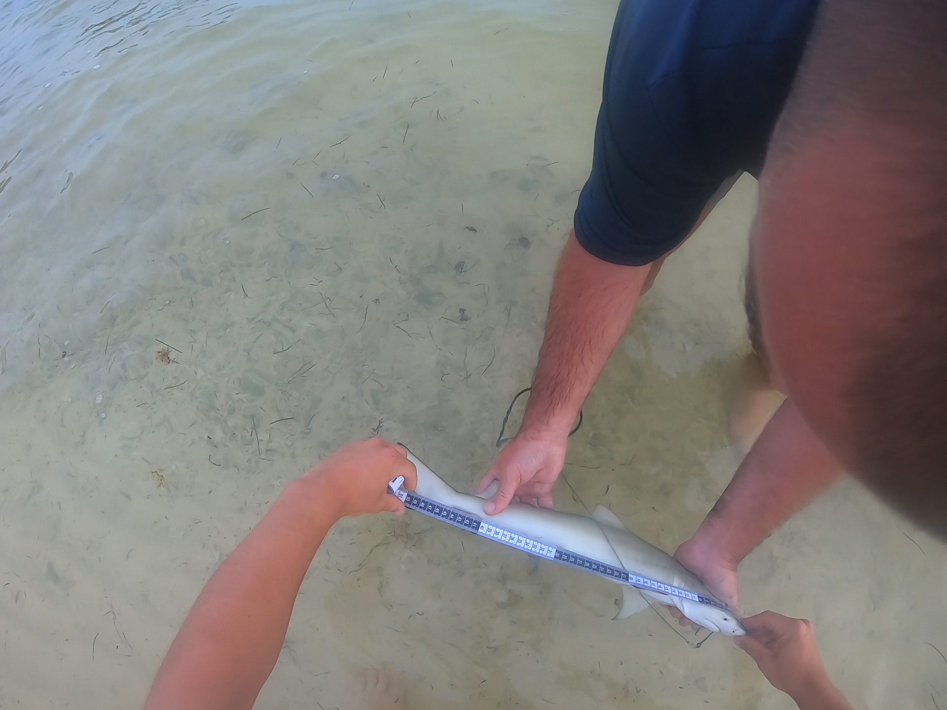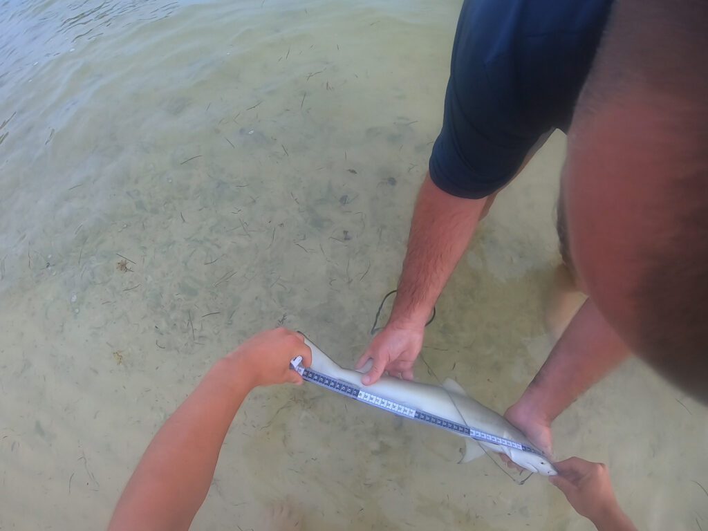 Measuring and Tagging a Neonate lemon Shark along the shores of Anegada.
