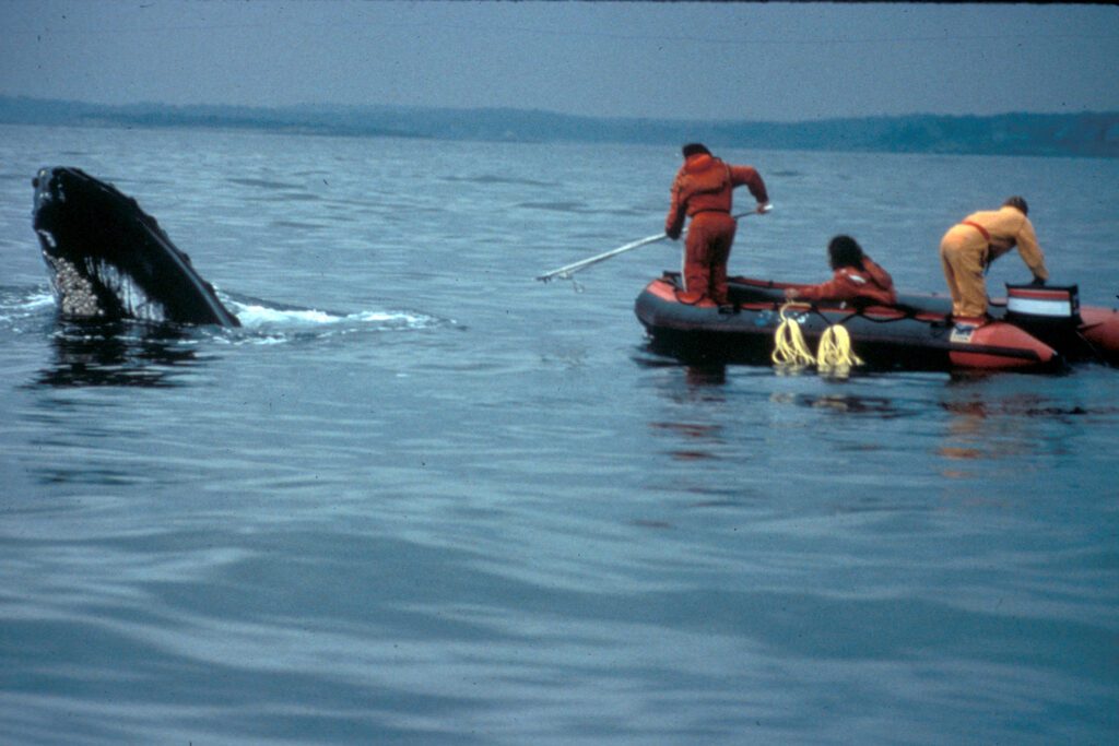 Forty years ago, on Thanksgiving Day, 1984, Charles “Stormy” Mayo and David Mattila of the Center for Coastal Studies (CCS) performed their first-ever successful whale disentanglement. The whale was a humpback called Ibis.