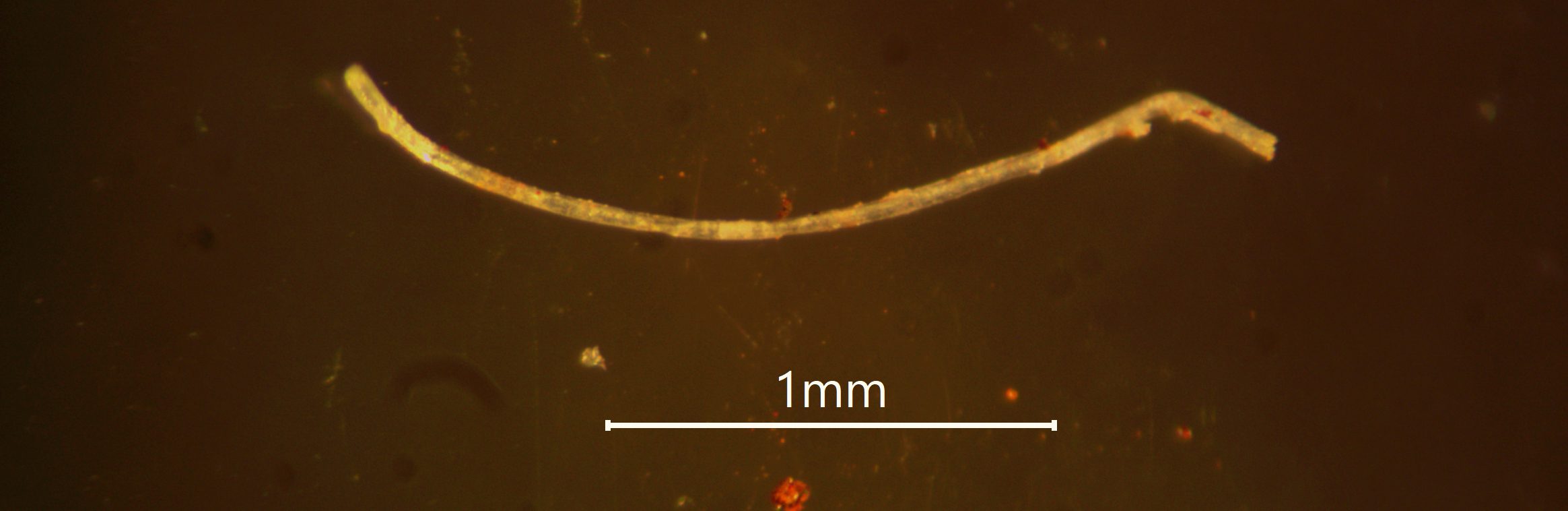 Researchers at the Center for Coastal Studies are studying the presence and impacts of microplastics in our marine ecosystem. A recent publication by Christy Hudak and Lisa Sette reported their findings of plastic particles in the fecal samples of gray and harbor seals in the Northwest Atlantic populations. In addition, Christy is working with the University of Rhode Island and Stellwagen Bank National Marine Sanctuary to study plastic ingestion of Great Shearwaters caught in the gillnet fishery in the Gulf of Maine; and she is investigating the potential ingestion of microplastics by North Atlantic right whales. The microplastic fiber pictured (above, middle) was found in an archived sample of zooplankton, the preferred food of a right whale.