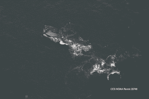 The first right whales of the day were on track line 2, where there was a five whale surface active group (SAG). In the SAG were #4020 Nymph, #2713, #3617 Salem, #3541 and #4650 Sebastian. Sebastian is #3450 Clipper’s only known offspring and named for the Sebastian Inlet where he was brought to as a calf. Unfortunately, Clipper is part of the unusual mortality event and was killed by a probable vessel strike in the Gulf of St Lawrence in 2019.